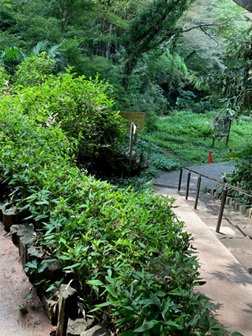 斜面と谷底との境目から湧き水が出ており、手を浸すと冷たく感じます。湧き水は、雨が地面から地下に浸み込んで長年かけて、しみ出て来るのだそうですが、もし周りがナシ園でなく宅地だったら、雨水が浸み込まないので、湧き水は涸れるだろうとのこと。湧き水を守るには、公園だけでなく、周囲の環境も大事なのだと感じました。