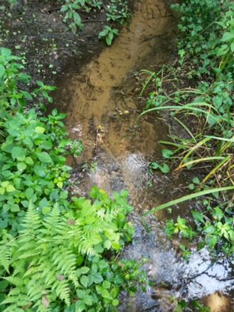 図4は「微地形」です。私の趣味で、「地層がはっきり見える崖のミニチュアが、そのまま小さな水流にしずんだような」ものを撮影しましたが、これだけが注目すべきものだというわけでは無論ありません。図5の水流は、金子さんが「ここにはスナヤツメがいる」というのでとったのですが、この写真に写っているかどうかは心もとないですね。スナヤツメは「ヤツメ」というからにはヤツメウナギの仲間で、「円口類」という原始的な脊椎動物。ただ「吸血魚」の印象があるヤツメウナギらしからず、スナヤツメは子供のころに泥中の有機物などを食べているようです。彼らとならぶ当地の希少生物に淡水紅藻カワモズクがありますが、今回は会えませんでした。