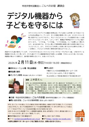 周囲の子ども達が使用している中、うちの子だけ与えないわけにもいかないのでは…でもやはり心配、と思われている保護者の方も多いかと思います。子ども達のデジタル機器使用状況や使用による影響、それをふまえた使い方の工夫、保護者が取るべき対策など、諸外国の事例を交えつつ、お話いただきます。
