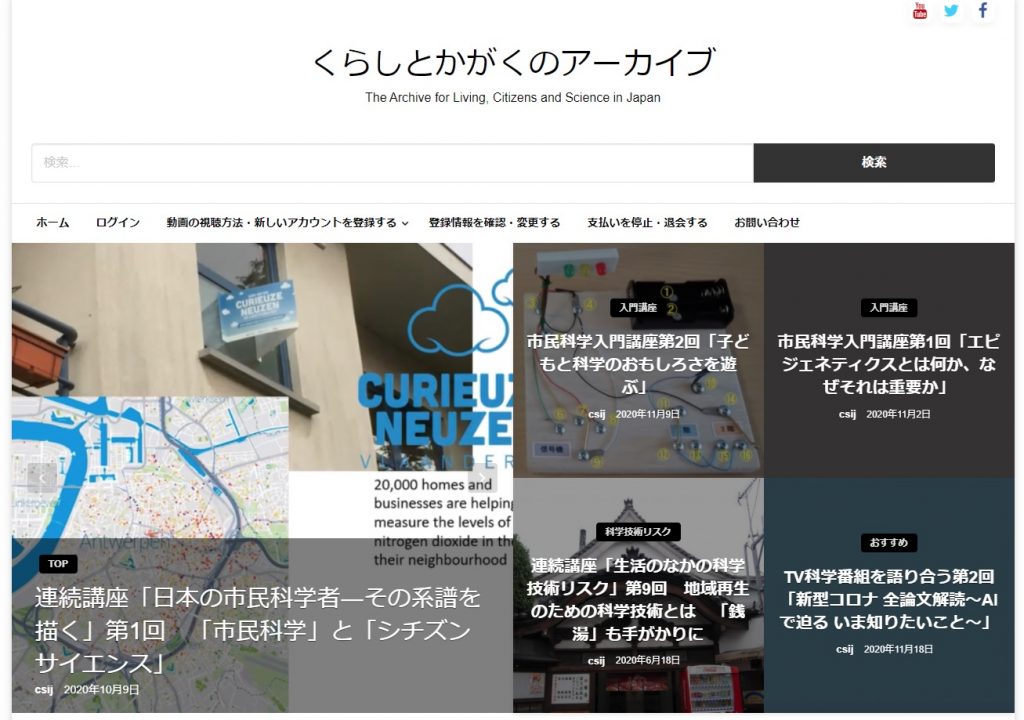 ・すべての動画を収めた「くらしとかがくのアーカイブ」のサイトに入って、いつでも好きな時にどの動画も観ることができます。